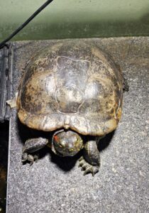 In Meinkingsburg (SG Steimbke) Höhe Tankstelle wurde am 16.10.25 eine Chinesische Streifenschildkröte aufgelesen.